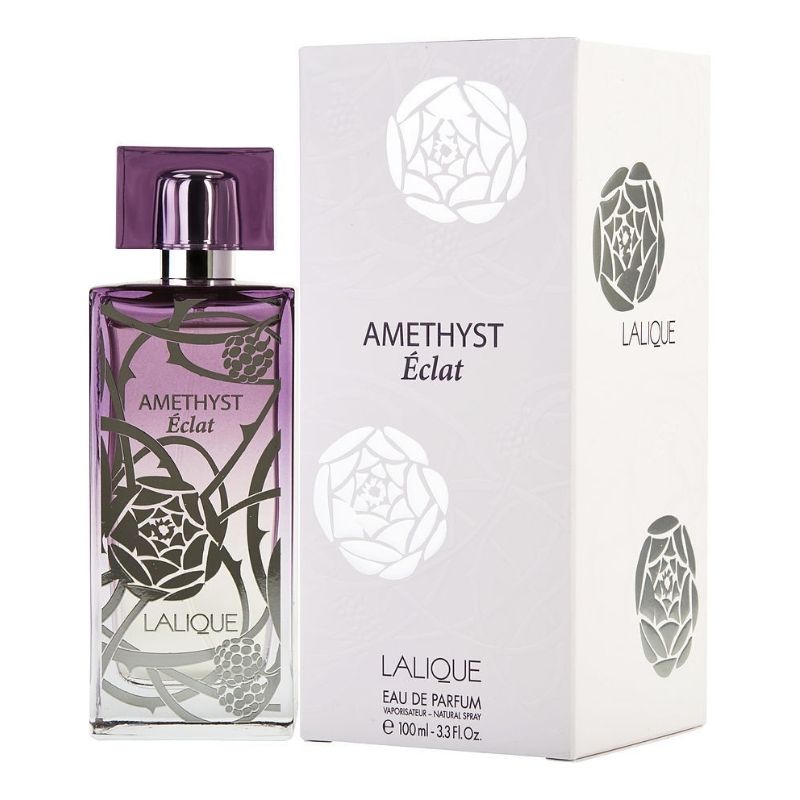 Բույրը, ինչպես և իր նախորդը, ոգեշնչված է կիսաթանկարժեք քարից՝ Ամետիստից, շիշն ունի նույն ձևը, միայն թե այս անգամ այն պատրաստված է մանուշակագույն գրադիենտով՝ զարդարված քաջվարդի և մոշի ծաղիկների պատկերներով։ Օծանելիքը Amethyst օծանելիքի եզրն է, որը թողարկվել է յոթ տարի առաջ: Բույրը ձեռք բերեց ավելի թեթեւ ու հմայիչ հնչողություն։ Lalique Amethyst Eclat-ի օծանելիքի կոմպոզիցիան բացվում է սև հաղարջի, հասած ազնվամորու և չինական տանձի նոտաներով։ Սրտում հնչում է պիոնների, թավշյա վարդերի և նուրբ մագնոլիայի փունջ: Բույրն ավարտվում է թրթնջուկի, մոշի և գայթակղիչ մուշկի ակորդներով։