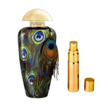 Ценители павлинов — уникальных птиц сказочной красоты, необыкновенный узор хвоста-веера которых сотни лет очаровывает всех людей, достойно оценят дизайн флакона ручной работы. Он выполнен с имитацией павлиньих перьев, что символизирует роскошь и элегантность. Изыск обладает ярким и блестящим, как настоящий павлин, запахом, который переливается радостью и богатством.
